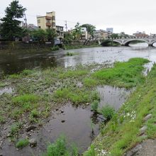 金沢の城北、東茶屋街近くの浅野川に架かる三連アーチ橋です。国の登録有形文化財に登録さるているこの橋は大正11年に掛けられた大きな橋です。車やバスの行き来が多く結構渋滞する場所でもあります。橋から望む浅野川は金沢を代表する景色の一つです。