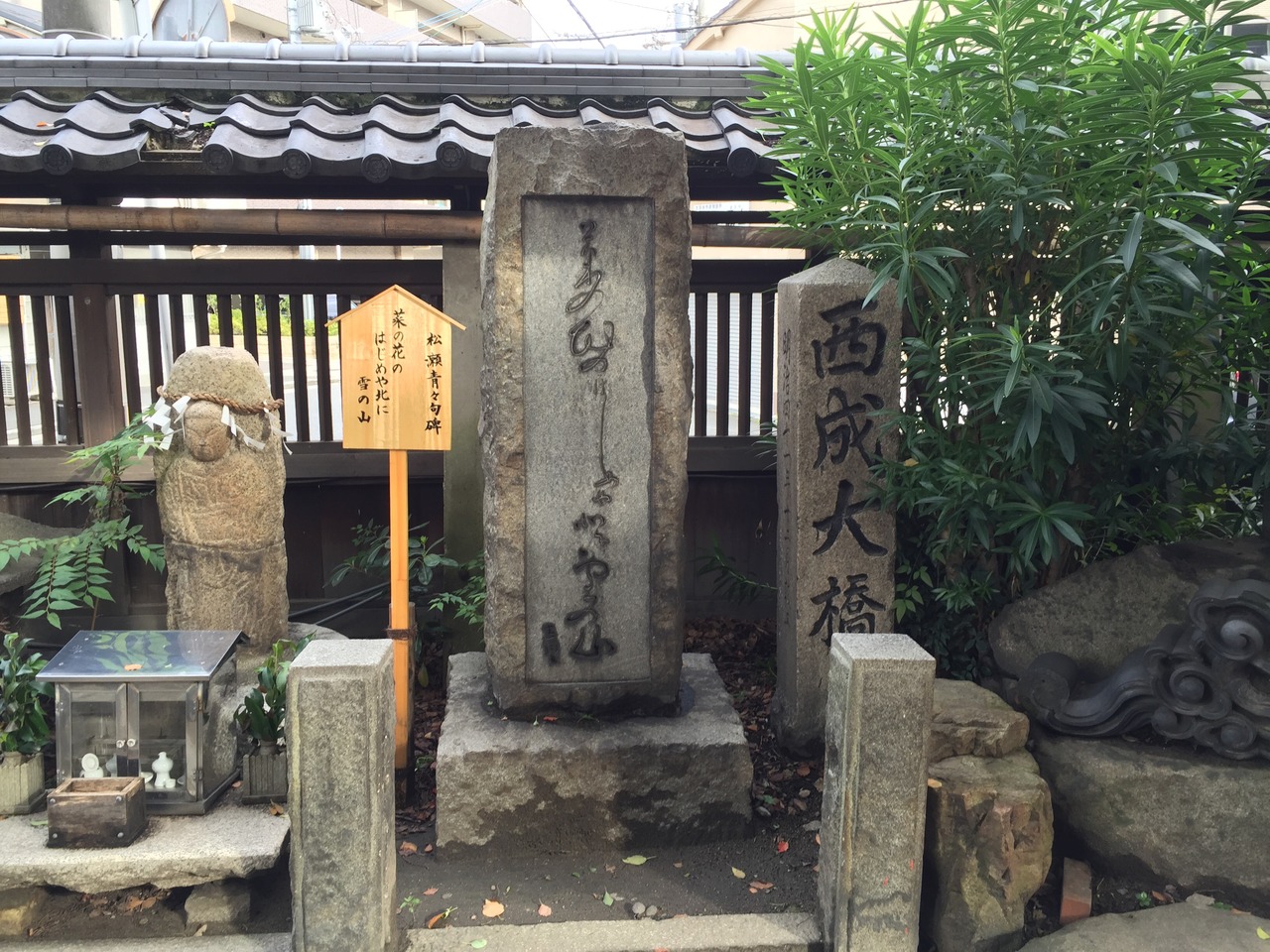 海老江八坂神社の境内に西成大橋の親柱があります。淀川にかかる西成大橋は明治41年に完成しましたが、幅5.5mの橋であったため、通行量増大により拡幅が必要となり、路面電車も通る大きな橋として1926年、現在の淀川大橋が架設されました。