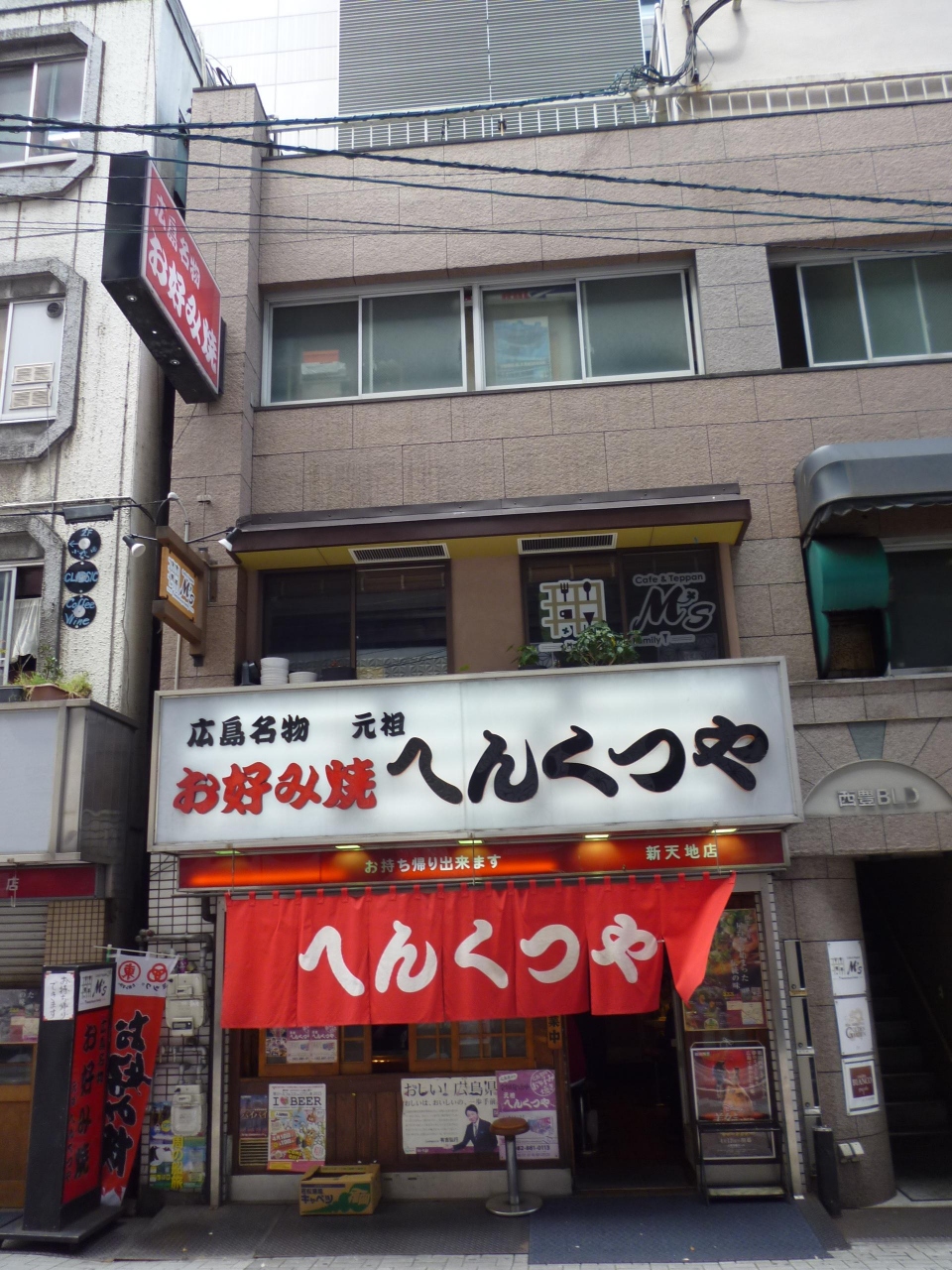 遅めのランチは、やっぱりお好み焼きが好きです。空腹で行きました。新天地にある「へんくつや」さんです。平日だったので、カウンター席に座れました。肉玉そばを注文して、焼いてくれるのをズーッと見ていました。芸術的です。お腹いっぱい食べて満足でした。