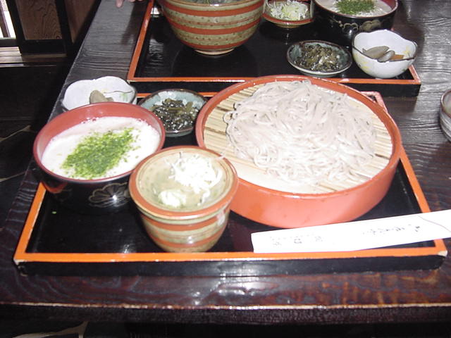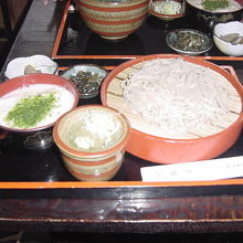 かつての宿場町が丁寧に保存されている奈良井宿の中に立地するおそば屋さん。ちょうど宿場の中央付近にあります。店内はテーブル席と、奥には座敷があります。ここではそば定食を注文。地元のそば粉で打ったおそばと、とろろご飯のセットです。とろろごはんが甘くて美味しかったです。そばは文句なし。10月とはいえ店内はストーブを焚いていました。