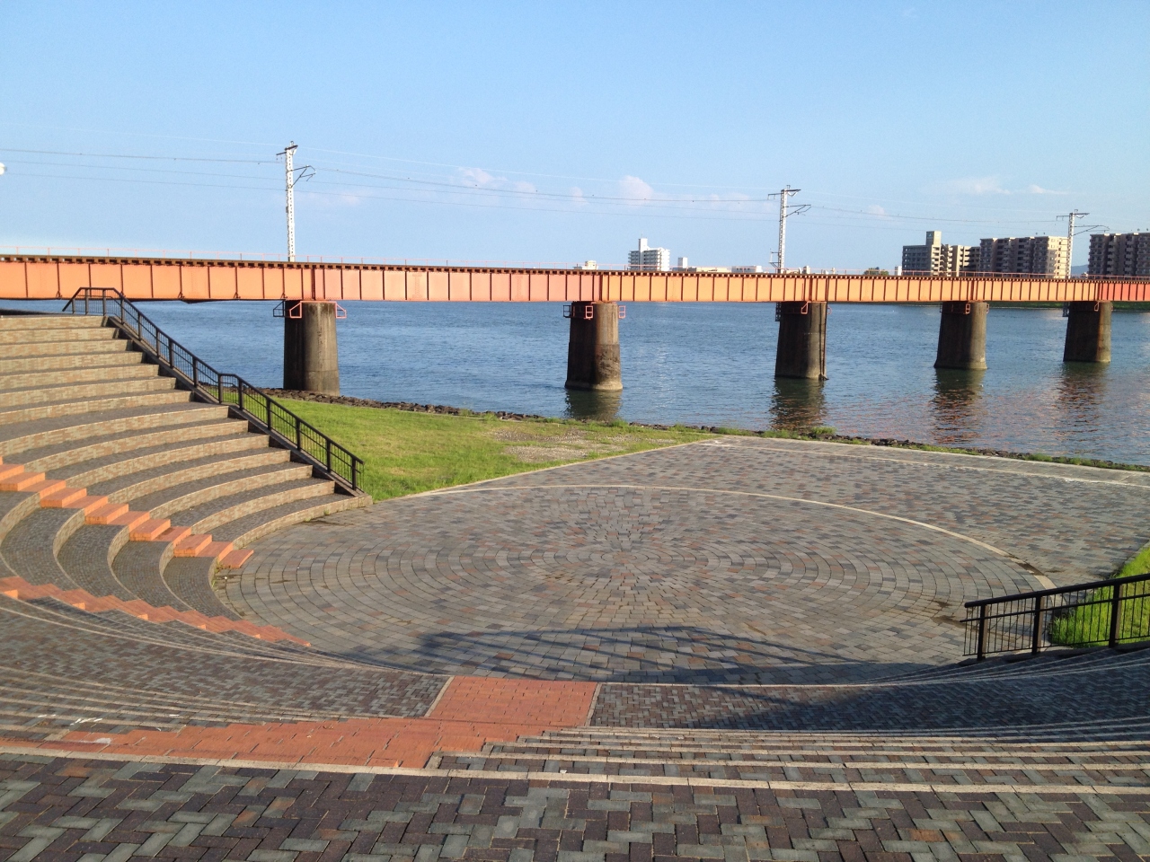 帆が付いたベンチがあり、大淀川のゆったりとした流れを見ながら、心が休まるスポットです。
