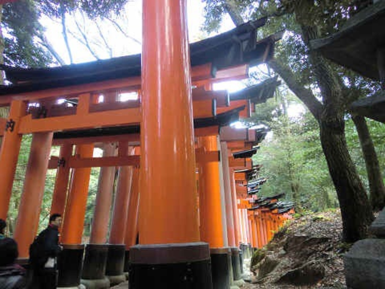 伏見稲荷大社の裏手にあり、山道に赤い鳥居が何千本も連なっており、まるでアーケードのようになっています。