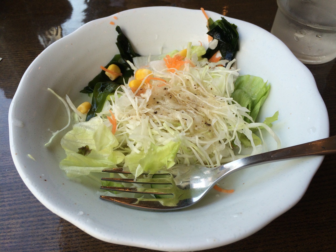 サラダ、パスタ、ドリンクで800円。表に置いてある割引券を提示すると100円引きの700円になりました。