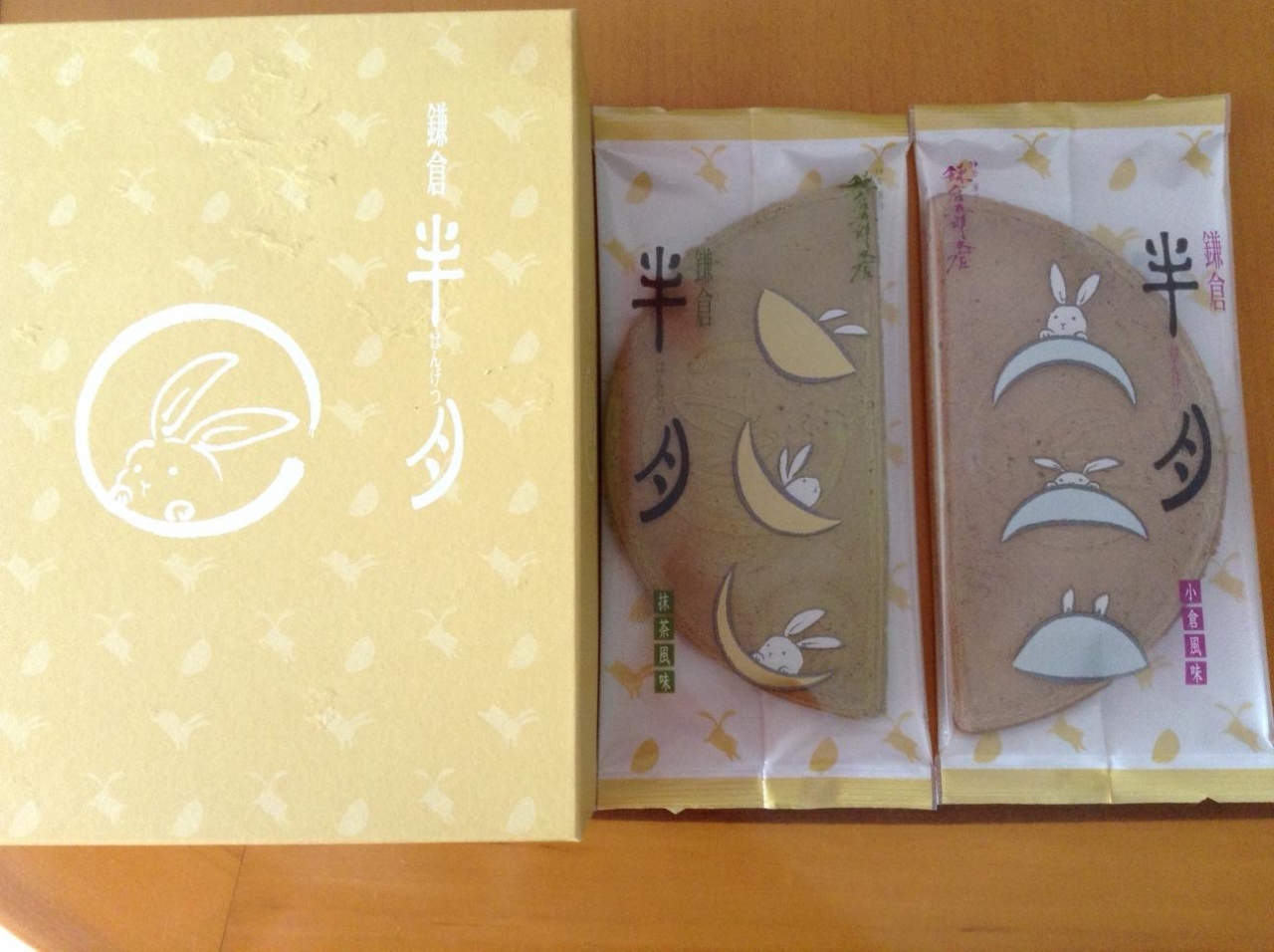 ウサギのパッケージがかわいくて、開けたときまずほっとします。小豆味と抹茶味の二種(味と言ってもかなり薄いですが)。見た目よりずっと食べごたえがあり、その辺が評価が高い理由です。一枚を食べるのにかなり時間が掛ります。生地はサクッと中のクリームがほんのり甘く。私は好きです。