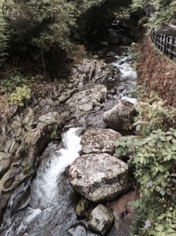 渓流沿いにある7つの滝ですが、遊歩道から滝へ降りる階段が結構歩き出があります。今は大滝がホテルの利用者しか見ることができないので、6つの滝になりますが全部見ようと思うとかなりいい運動になります。早く、大滝も誰でも見れるようになるといいですね。