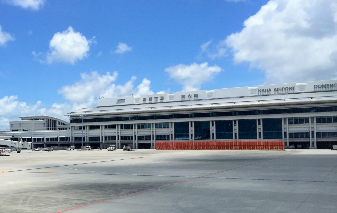 空港発着時の景色には何時も感動します、海の色がとにかく綺麗で、沖縄に来たのを実感します。