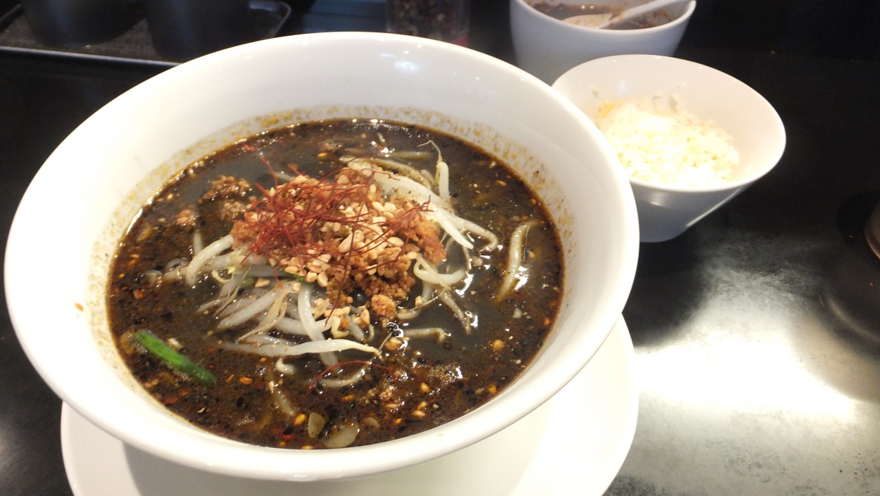 黒胡麻坦々麺(900円)をいただいてみました。麻・辣ともかなり効いていますがもっと辛くすることが出来ます!
