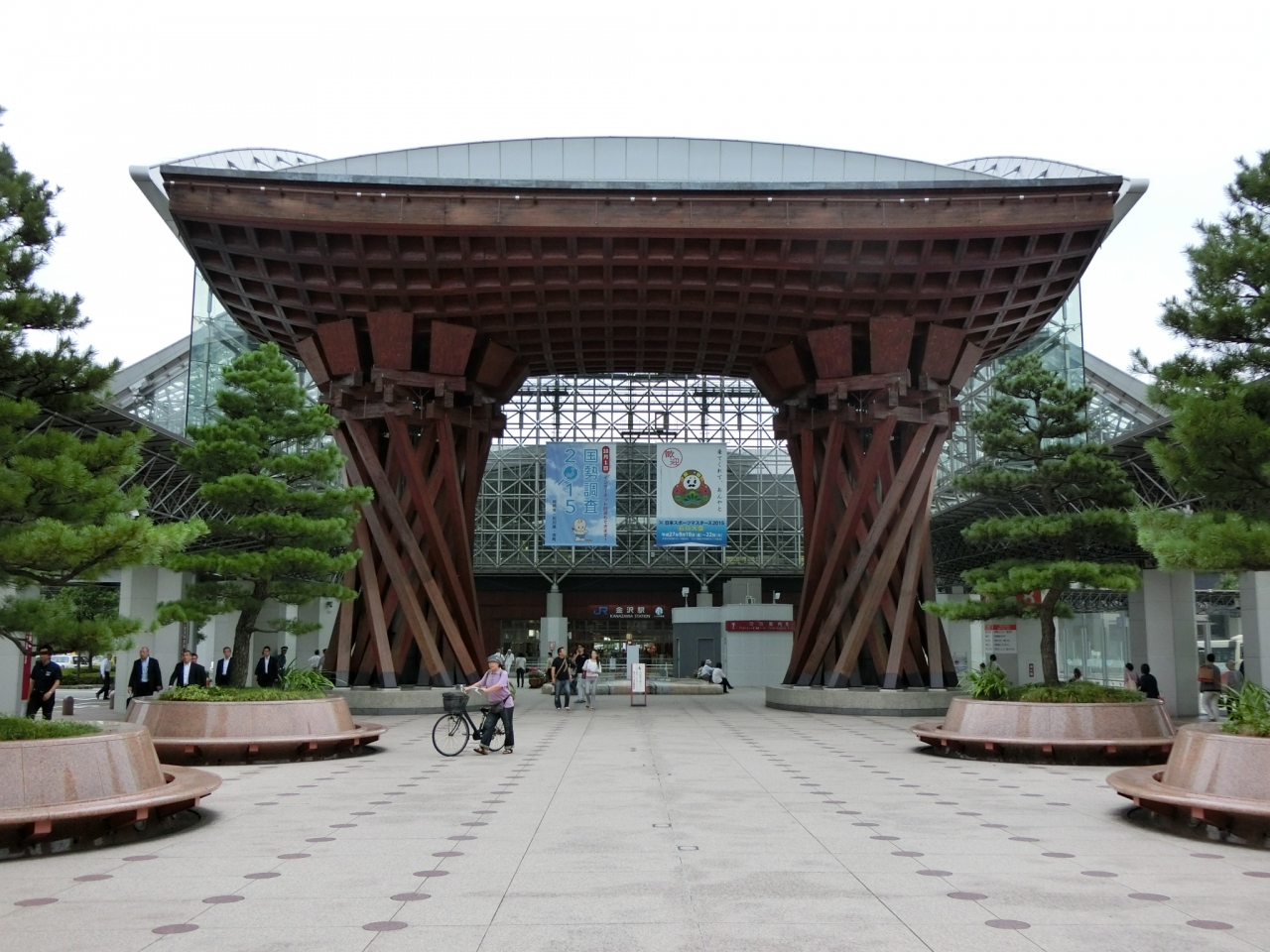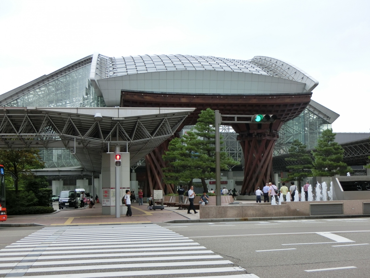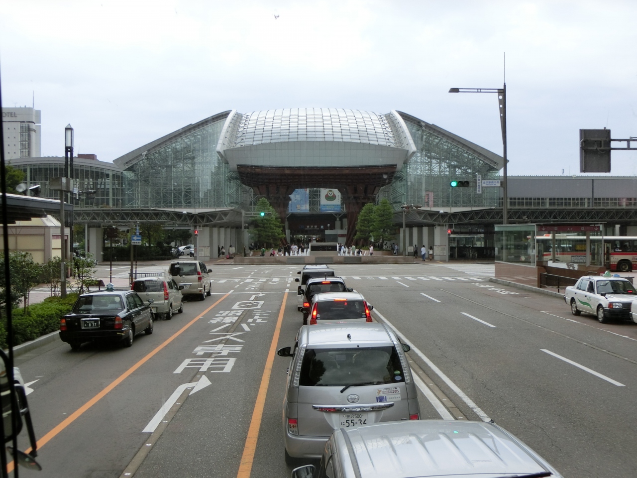 新幹線開通で生まれ変わった金沢駅に初めて訪れました。兼六園口の正面から見た、鼓門ともてなしドームはインパクトのある印象的な建物でした。鼓門は金沢のイメージとしても、鉄パイプを組んだガラス張りの空間・もてなしドームは、夏の陽射しの強いときは温室空間になり大変だろうと思いました。