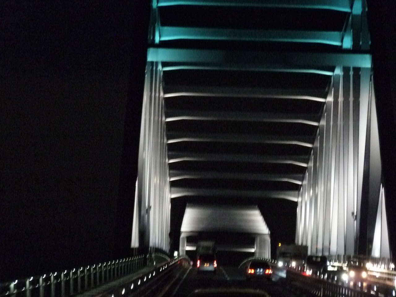 東京観光初日の夜にはとバスで東京ゲートブリッジを渡りました。バスガイドさんの解説も聞きながら写真撮影に没頭していたせいか、肉眼での味わいが少し欠けたことになったと思いますが、ライトも美しく感じられたので大変良い思い出となりました。