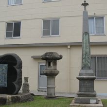 地下鉄谷町線の谷町六丁目駅から歩いて10分ほど、大阪カテドラル聖マリア大聖堂の敷地内にあります。阿波野青畝は奈良県生まれの俳人で、敬虔なカトリック教徒であったとか。最初は教会内に句碑?と違和感を感じましたが、そんな縁があって句碑が立てられたようです。句碑には『天の虹 仰ぎて右近 ここにあり』と彫られています。