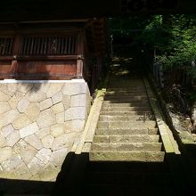 飛騨高山の桜山八幡宮の境内末社です。飛騨領主金森重頼が八幡宮再興に併せて、高山城鎮護の神として祀ったものです。以後も、代々飛騨郡代は陣屋の鬼門封じ、火防鎮護の神として篤く崇敬したそうです。長い石段があります。