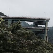 天城から下田へ抜ける天城越えの街道にあるループ橋で、かなりの高低差を3周ぐらいのループで回って昇り下りする橋です。大きく回るのですが、少しだけ目が回る感じがします。スピードを出したくても大抵ゆっくり回る車につかまってしまいます。