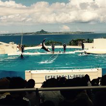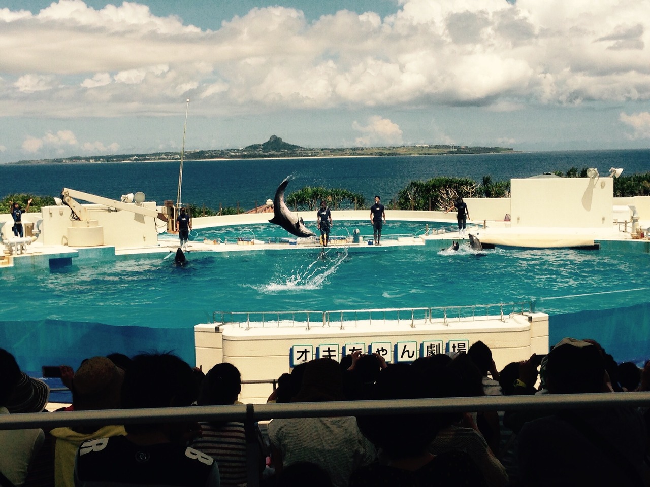 夏休みということもあり、水をイルカにかけてもらう演出があり、大盛り上がりでした。