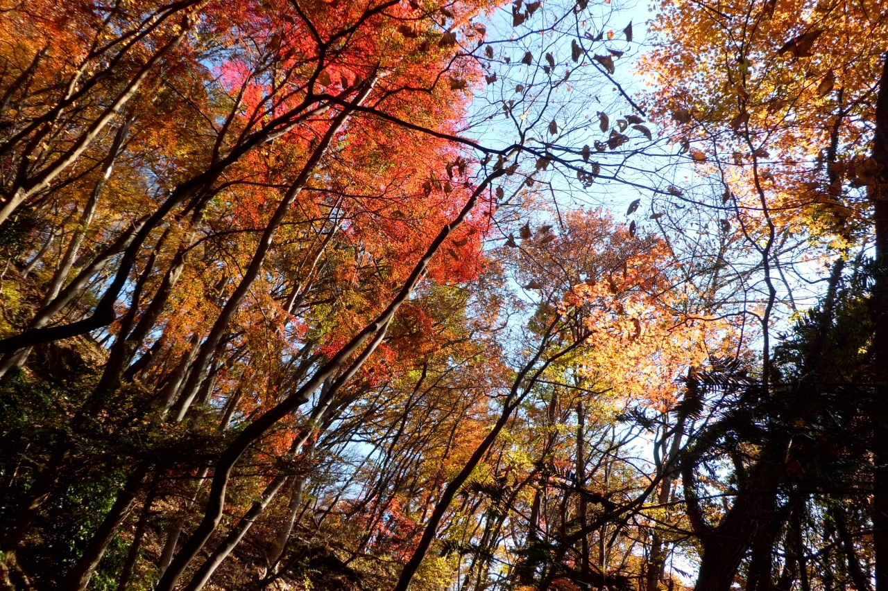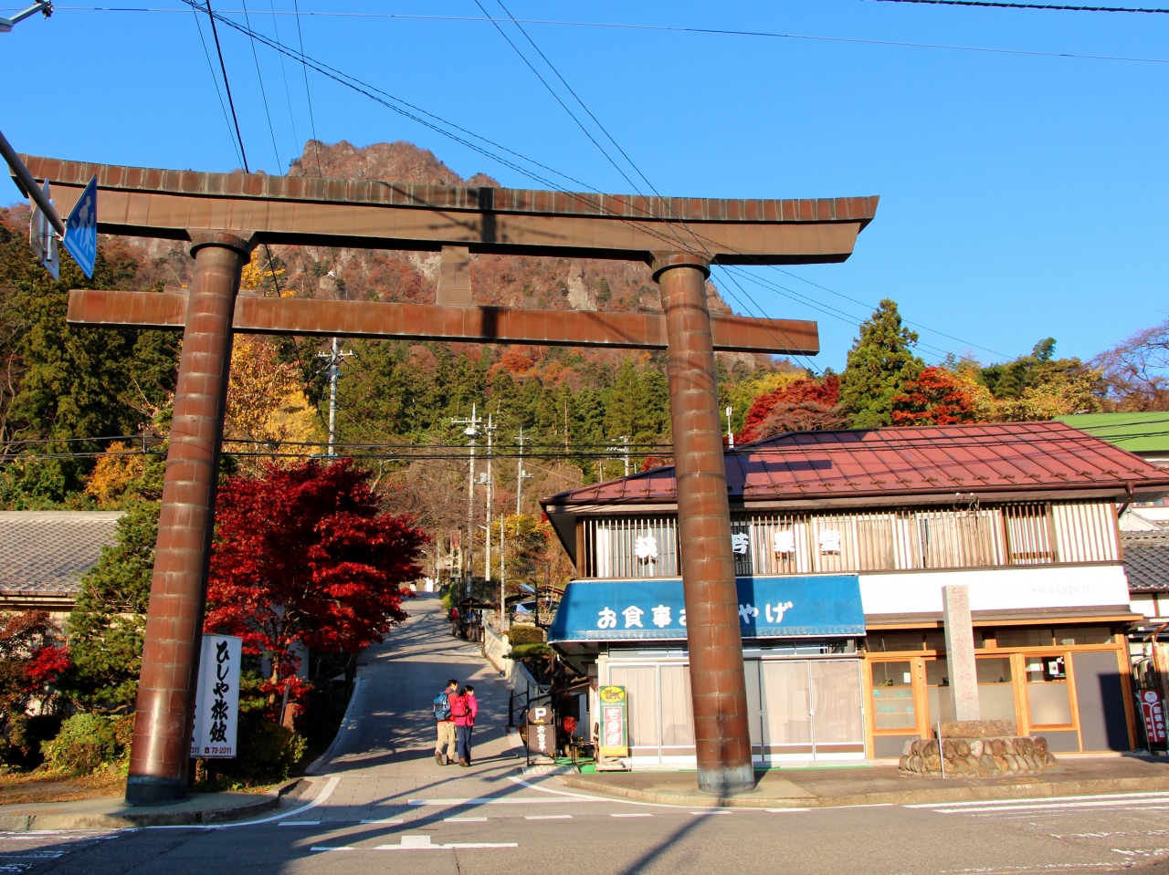 妙義神社は、紅葉した山に周囲を囲まれ、まるで紅蓮の炎を纏っているかのようにも見え、紅葉と神社を両方楽しみたい方にはお勧めの場所だ。
