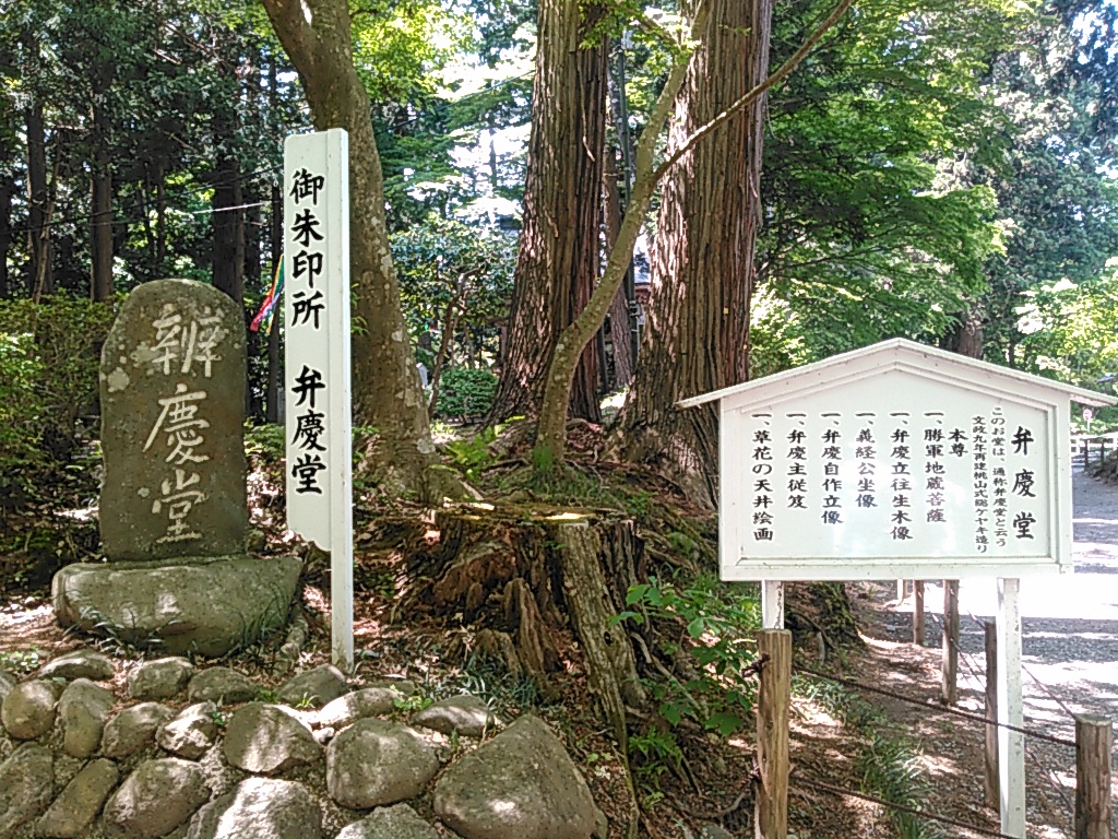 お堂の中には、武蔵坊弁慶と源の義経の像が安置されているそうです。近くで見ると迫力があります。
