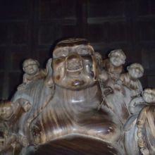 正面に飾られている木彫りの招福布袋尊は布袋さんに寄り添う子供も彫られていて観る価値ありのパワースポットです。