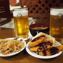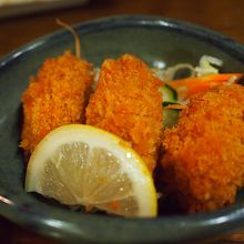 お通し取り過ぎたせいか、シメサバとカキフライしか頼めませんでしたがどちらも300円。