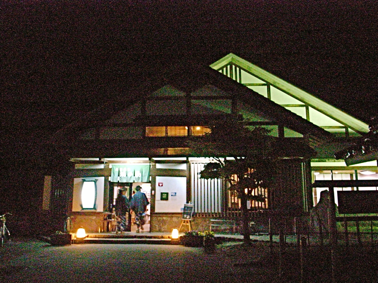 温泉街のはずれの方にあるため(城崎温泉自体がわりと仄暗いのですが)、夜になると写真のとおり、周りがだいぶ暗くなります。