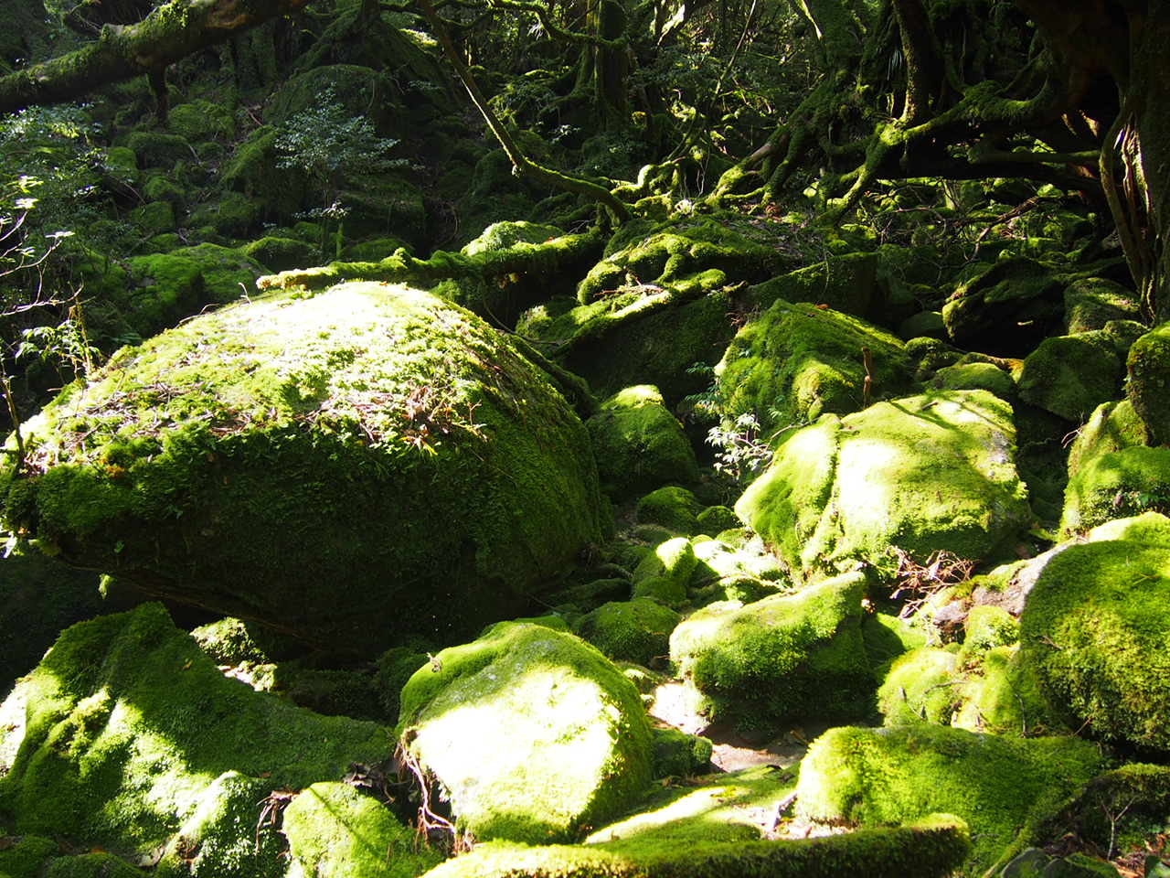 登山をしている時の雨は非常に厄介です。しかしながらその雨がこの苔の森を作ったとも思うと感慨深いものがあります。4年前に訪れた時は台風の去った後。今回は晴天の中、この森を歩きましたが、圧倒的に雨上りの方がきれいでした。