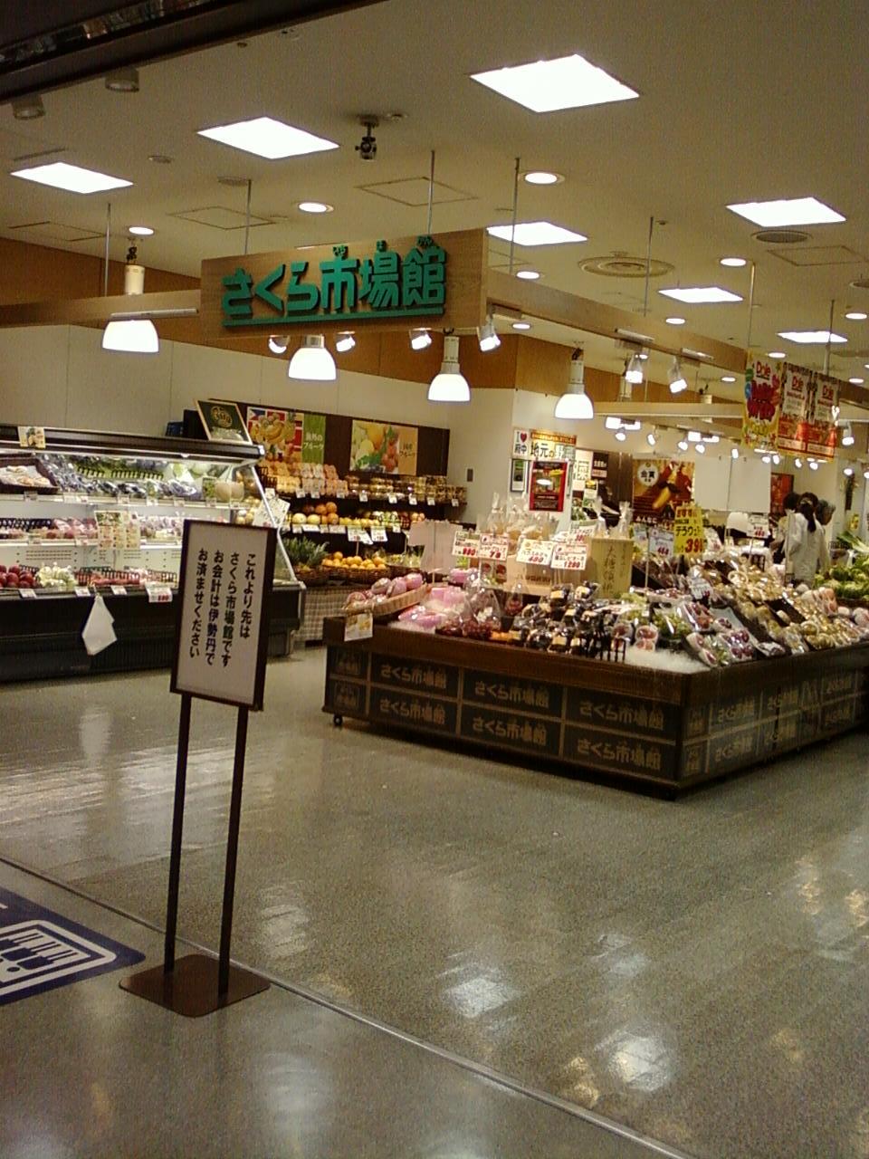 さくら市場館は、京王線府中駅から3分、JR南武線府中本町駅から7分くらいのところにある、フォーティスの地下一階にあります。、食品フロアにあります。野菜、果物、お茶や海苔、富澤商店や韓国食品まで入っているスーパーです。なんと言ってもおすすめはお魚ですね。