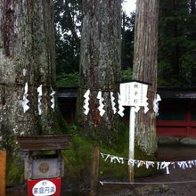 二荒山神社の境内にはたくさんの御神木がありました。どれも長い樹齢がありそうな立派な杉の木で、その大きさに圧倒されます。夫婦杉、親子杉、三本杉、縁結びの御神木などなど。パワースポットとしても人気の場所ですね。