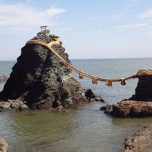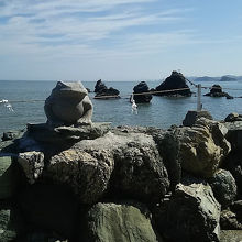 夫婦岩と間にかかった縄で鳥居になっていて、その700メートルほど先の海底に御神体があるそうです。
