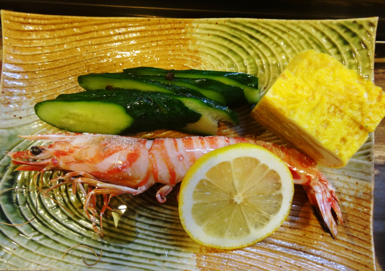 クジラのさえずり、地の鯵、サバ、車エビ、さざえ、うに。