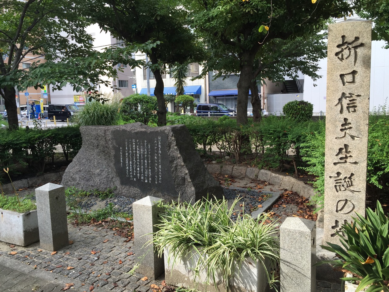 折口信夫は、明治20年現大阪市浪速区敷津西一丁目に生まれ、昭和28年9月3日死去しました。