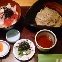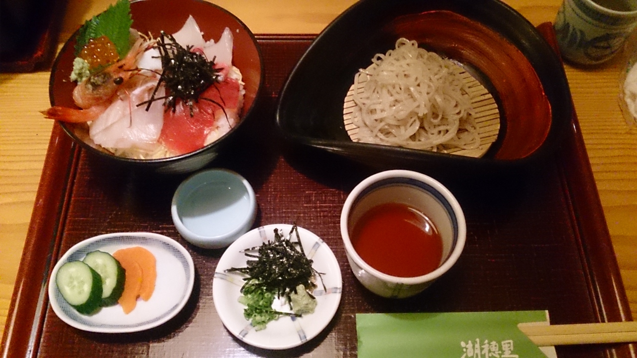 郡山駅2階のレストラン街の右手にある和食屋さん。メニュー注文時に「お帰りの新幹線は何時ですか?」と一言確認があった。時間のないお客様には提供するのに時間の掛かるメニューを配慮しての配慮が嬉しかった。頂いたのは「海鮮ちらしと半そば」。