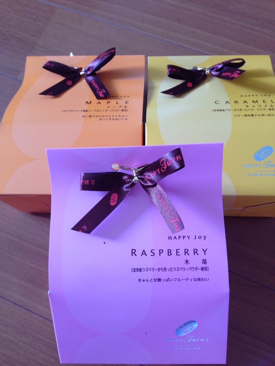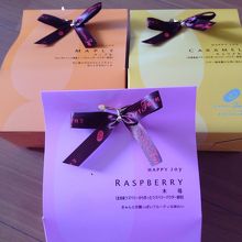 ハッピーターンの高級版です。各味7個入りと10個入り、アソートボックスがありました。店員さんによると阪急うめだ限定は和三盆味、定番はキャラメル味とメープル味、男性に人気は塩味が効いたカマンベール味、女性に人気は香りの良い木苺味だそうです。ハロウィーン期間限定のパンプキン味もありました。