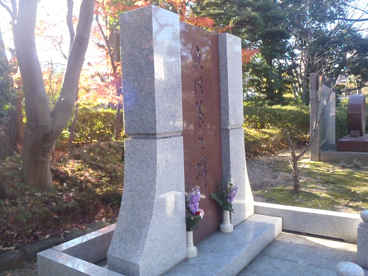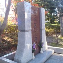 浜松町駅から西へ約700m三解脱門を潜って増上寺の参道に入り、左側にある水盤舎の奥の植え込みの中にある仏足石や観音像などと一緒に立っている魚供養之碑です。