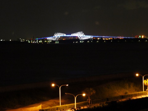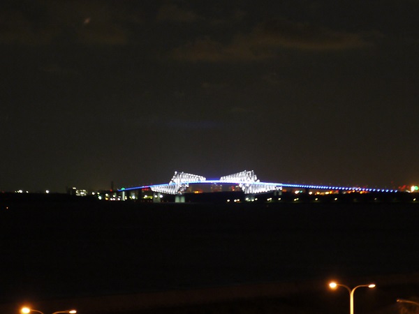 以前にも行きましたが今回は夜景を東京ディズニーシーから見る事が出来ましたので紹介したいと思います。ディズニーシーのコロンビア号の甲板から少々遠いですが綺麗に見えます。特に夜青くライトアップされた橋は本当に綺麗です。