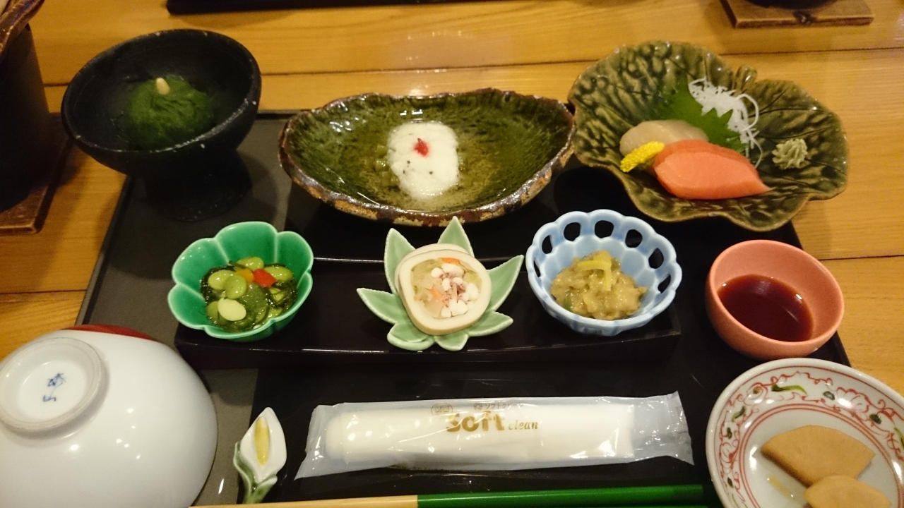 食事は食事処で。肉はなく、刺身、焼き魚、ホタテ焼き、山菜など、心と体に優しい料理。とはいえお酒にも合うので男性でも満足できるはず。地酒も黒板に書かれており、青森限定の「七力」もあります。蛇足ながらなにげにデザートのミルクレープが美味でした。
