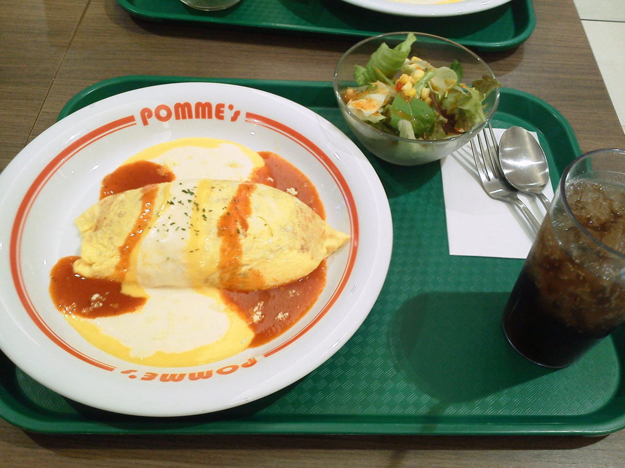 オムライスはセットメニューでサラダ、飲み物が