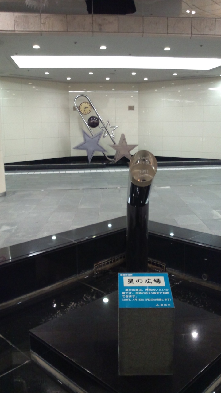 福岡市役所とイムズの間の地下通路にちよっとしたスペースがあり、そこでちょっと休憩が出来る椅子と机があります。