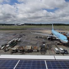 成田空港第1ターミナルの展望デッキは他の空港と違って貨物専用機の離着陸が見られるのが面白いですね。旅客機メインの他の空港と比べると半分近くが貨物機だったりして、成田と羽田の役割の違いのようなものを感じました。