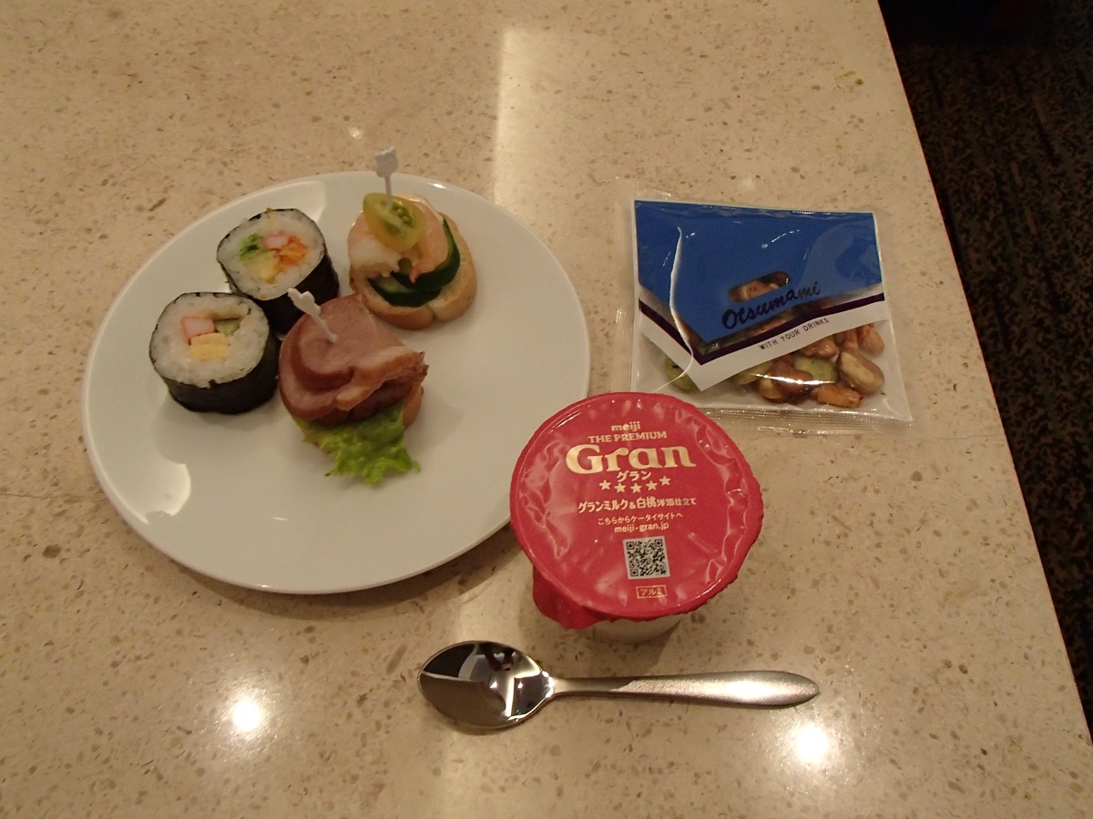 食事はJALのサクララウンジのように決められた場所があるわけではないので、席がなくて困るということがなくていいですね。