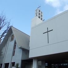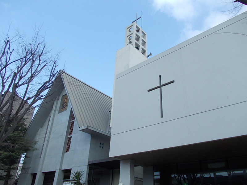 若宮大路に面したカトリックの教会なんですけども白っぽい外壁のおしゃれな建物で鎌倉のお嬢様学校の校舎みたいな感じなんですけども屋根の上の十字架と壁にかかった絵がカトリックぽいですね。ぜんぜん観光客はいないんで厳かな雰囲気がよかったですね。