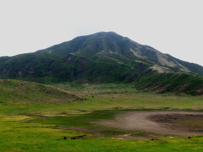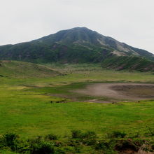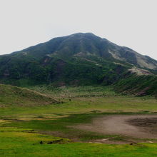 草千里ヶ浜の向こうに見える『烏帽子岳』