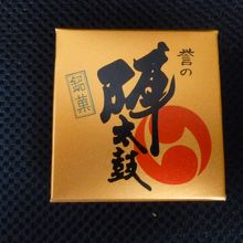 「誉の陣太鼓」で有名なお店です。お茶もいただくことができました。太鼓の丸い形をした包みの上から、ナイフで十文字に切って食べます。餡の中から、お餅が出てくる上品なお菓子です。お土産にしては、ちょっと高めですが、おいしいので買いました。