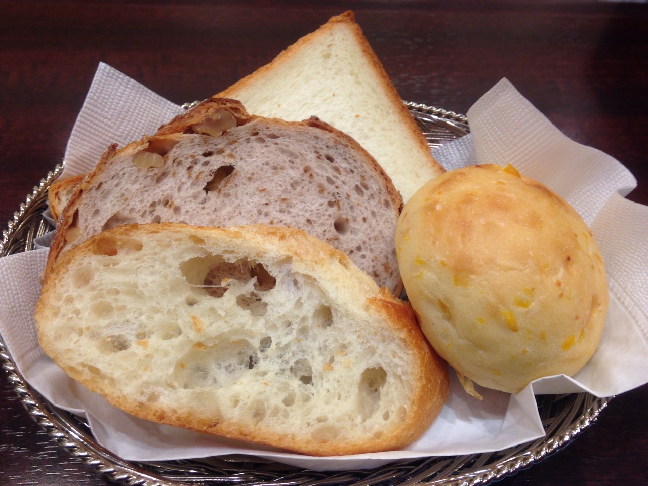 メインもですが、数種類食べられるパンも贅沢気分が味わえるおいしさです。