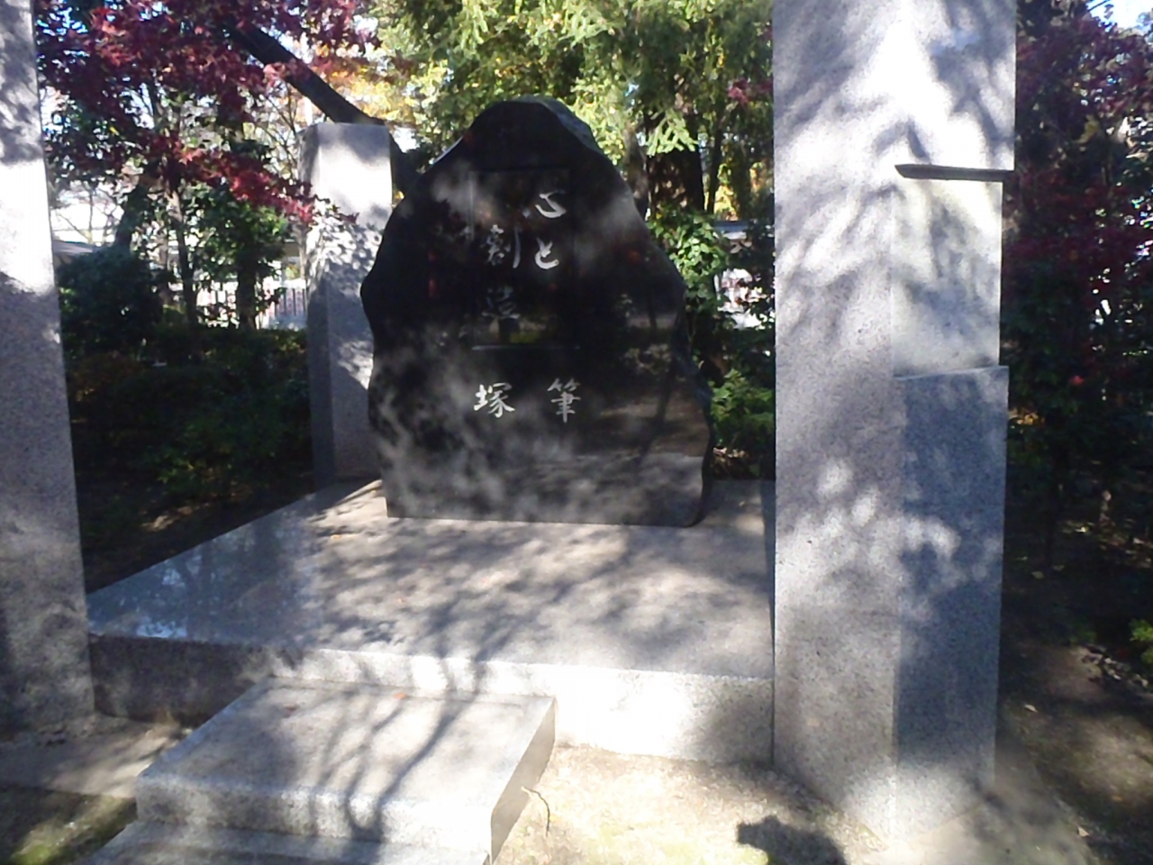 御影石の角柱が四隅にあり、真ん中に黒御影石に掘られた「心と創造」ついつい粗末に使ってしまう筆などの筆記用具に対する戒めと感謝、学びとは心の糧であり想像の源などとあり、最もだと痛感したまにはお参りする価値のあるスポットです。