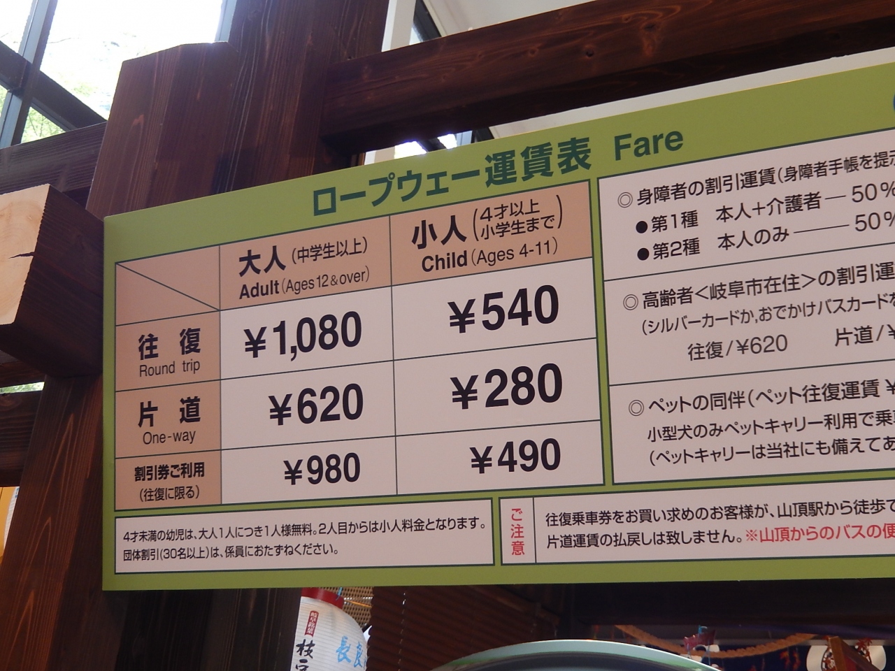 岐阜城のある金華山のふもとから伸びるロープーウェイです