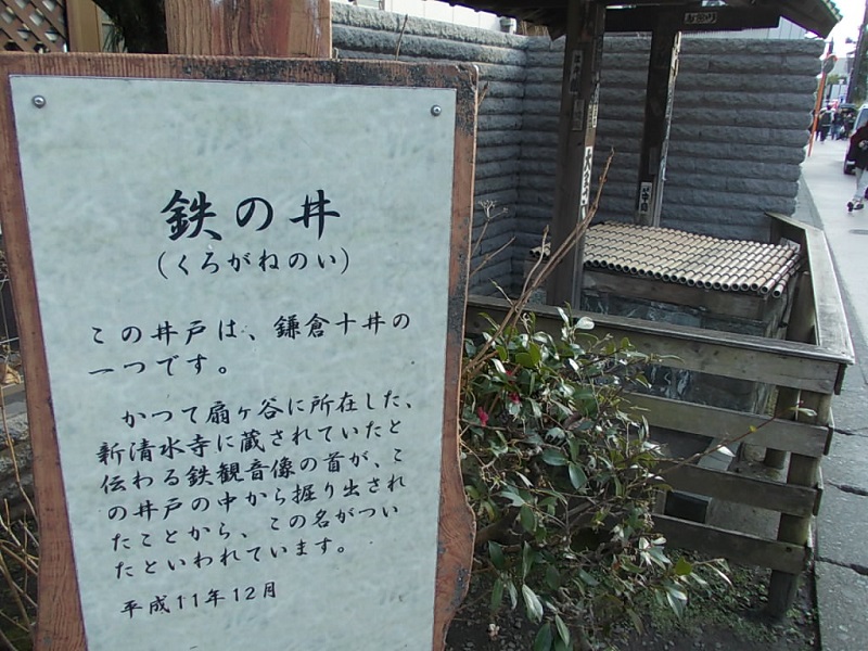 鶴岡八幡宮の西側の角当たりの交差点にあるんですけども全然知りませんでしたね。「てつのい」って何だと思ったら「くろがねのい」という読み方で、観音様の首だけ出てきたからという由来も、実際に井戸水を組んで首が出てきたらいくら観音様でも組んだ人はびっくりしただろうなと、余計な心配までしてしまいましたよ。鎌倉は街角にもこんな面白いことがあるんですね。