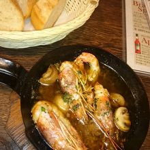 お通しも、手の込んだ料理でしたし、鮮魚のカルパッチョは、豪華な盛りで、コスパも良いですし、アヒージョは、味付けが絶妙で、煮汁のオリーブオイルに、バケットや、メルバトーストに浸し余さず頂きました。