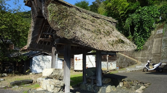 話は今世紀に戻るが、我が寅さんも第47作「拝啓車寅次郎様」で、マドンナかたせ梨乃と菅浦を散策する。山田組のロケ班と隊長五十嵐さんの大手柄でしょう。そんな風景が今も残る地区内を散策していると、現実と歴史とが微妙に入り混ざったタイムスリップしたような錯覚にはまる。昔は、集落の四隅にあったという一番奥の「四足門」迄行き引き返すと、集落の入口でその一つが修復されている現場に出会わした。こんなシーンは願っても観られ無いだろう。