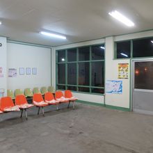 駅舎内はがらんとしていて、椅子とささやかながら文庫本コーナーがあります。