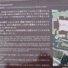 説明文によると、漏刻とは水時計の意味で、櫓に水槽があり時間を計ったそう。