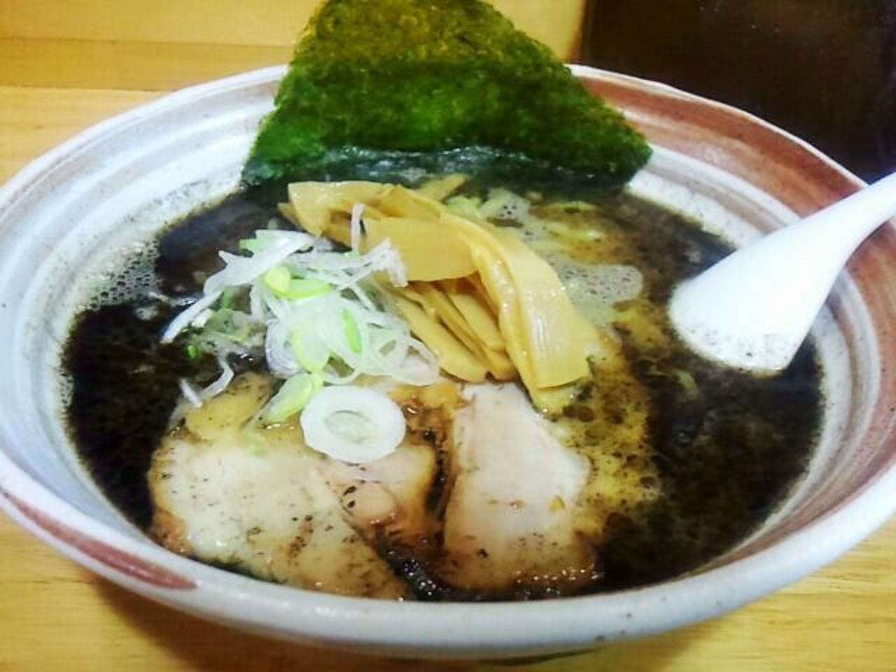 出てきたラーメンを見て黒いスープにドキッとしましたが、飲んでみると焦がしにんにくの風味が広がりコクのある口当たりの良いスープでした。