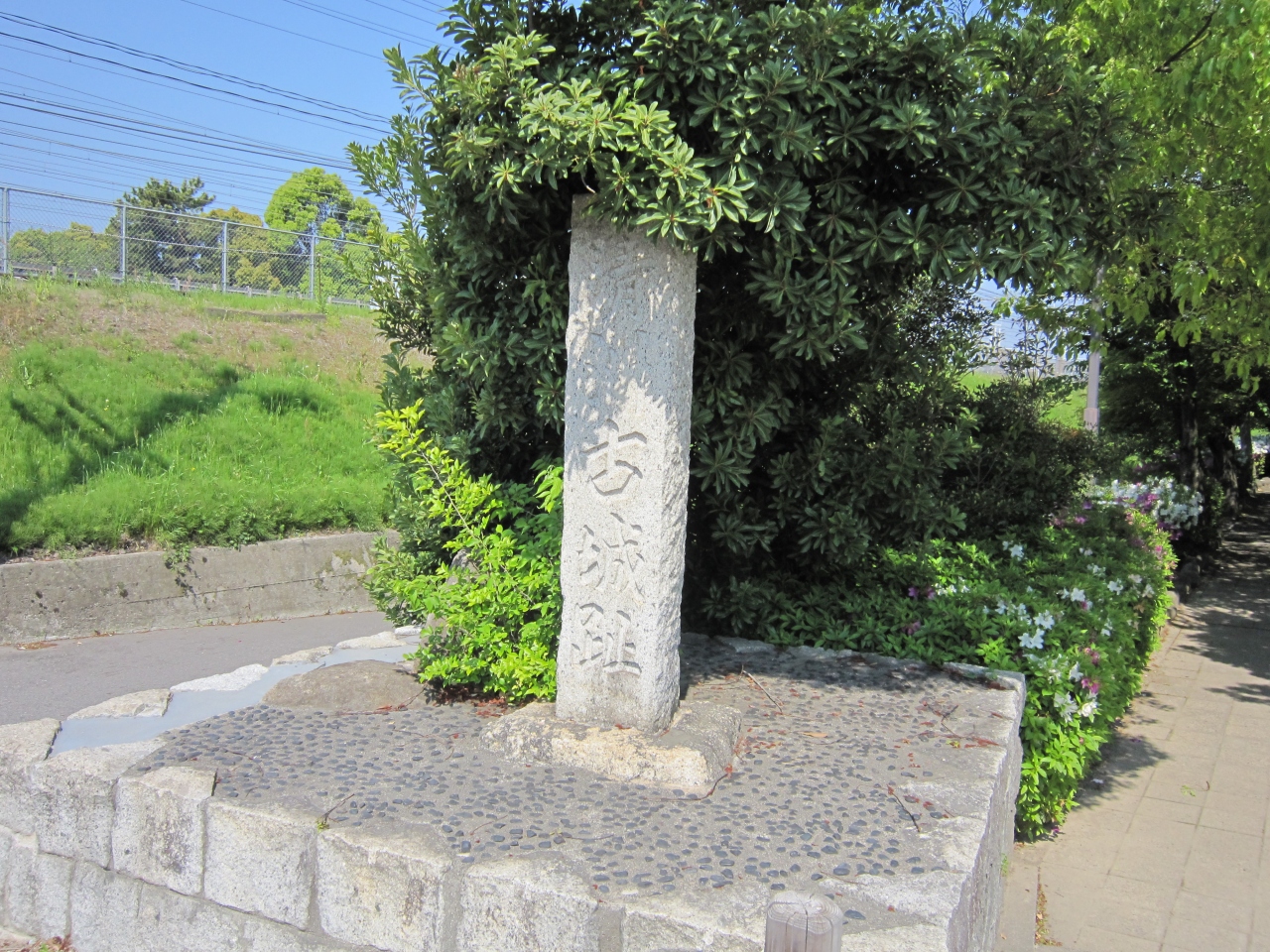 五条川の向うには清洲城の模擬天守が建っていますが、本来、清洲城の本丸はこの古城公園側に建っていたとのことです。その証として清洲古城跡の碑が建っています。